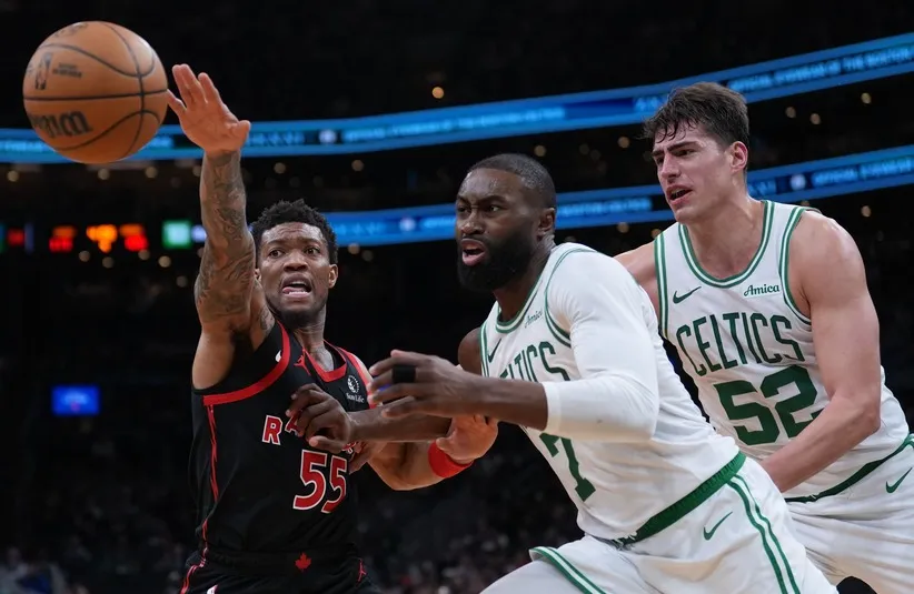 To be fair to Toronto, this wasn’t the Raptors team Boston has seen in years past. Toronto was missing key contributors, including Scottie Barnes, Brandon Ingram, and Jakob Poeltl. That forced Toronto to unleash a lineup that read more like a scrappy pickup squad than an Eastern Conference threat.