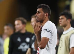 [Subscription Customers Only] Jun 30, 2025; Orlando, Florida, USA; Manchester City midfielder Rodri (16) looks on after a round of 16 match of the 2025 FIFA Club World Cup at Camping World Stadium. Mandatory Credit: Lee Smith-Reuters via Imagn Images